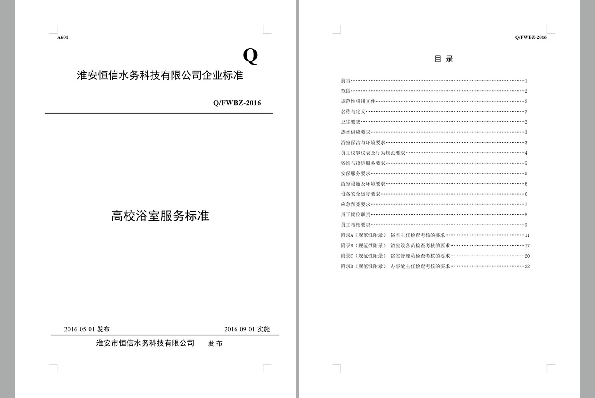 为规范浴室服务行为,全面提升高校浴室的服务水平,在总结全国30多个高校服务经验和教训基础上,公司从洗浴条件、服务质量、卫生标准、咨询投诉、设备管理、安保服务、监督机制等14个方面制定118条服务标准,为规范化管理奠定了坚实基础。
