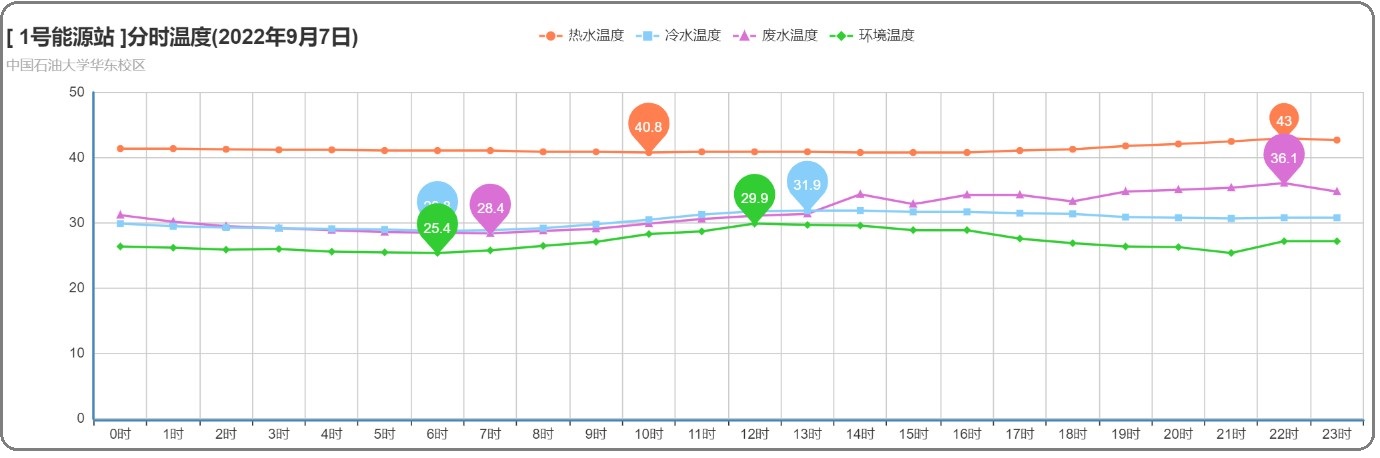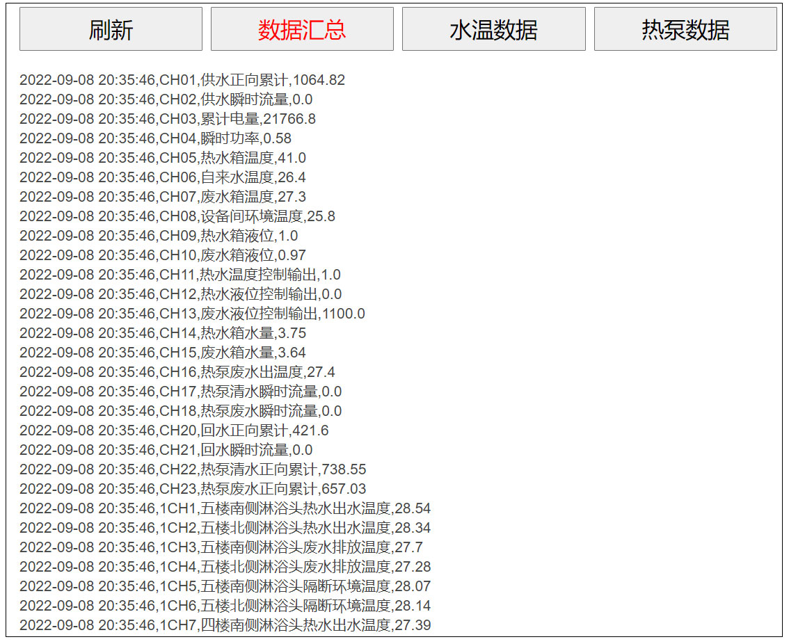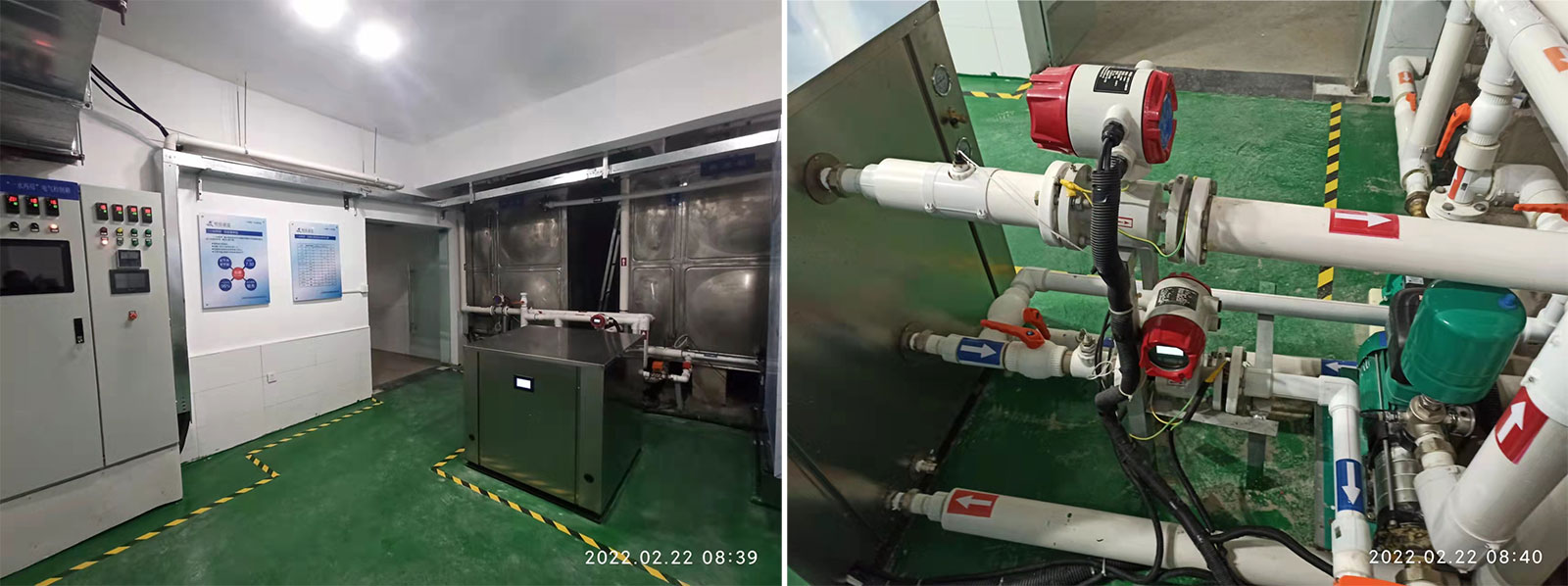 恒信公司建设了模拟公寓式分散洗浴场景的测试模型,负一层至五层共6层,每一层淋浴间的每个淋浴喷头、地漏,以及立管、横管的水温,以及室内、室外温度均被实时监测,热泵机组在1:1控制下运行,流量、进出水温度及消耗功率被同时实时记录。